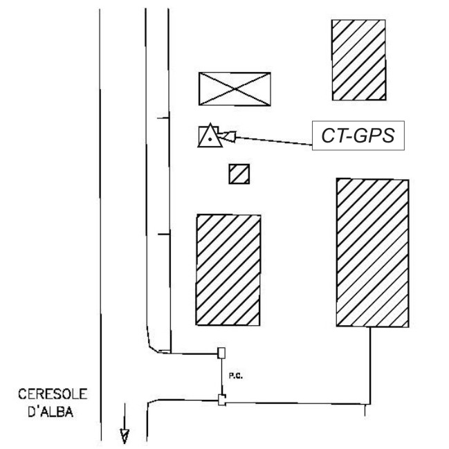 Centrino metallico infisso sulla sommità di un basamento in calcestruzzo, nei pressi di una tettoia di uso privato all'interno della proprietà privata del casolare.