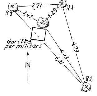 | Materializzazione | Segnale sulla sommità di una roccia dopo Rotonda a nord di una garitta. Centrino di superficie e di fondo. Riferimenti: tre croci incise su roccie. |