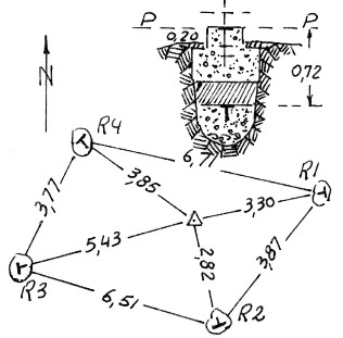 Segnale sulla sommità rocciosa del monte omonimo. Centrino di superficie e di fondo. Riferimenti: come da pianta.