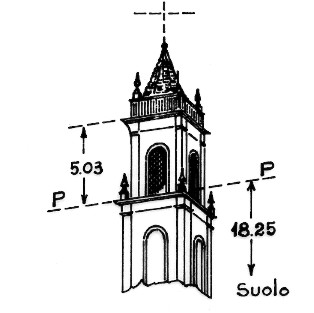 | Materializzazione | Campanile della chiesa della confraternita del Rosario sita al centro del paese. Asse geometrico del campanile. |