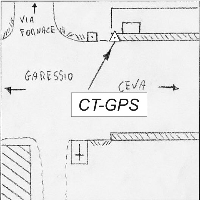 Centrino metallico infisso sulla sommità della spalletta sul ponticello a destra in direzione Garessio, lungo la S.S. 28 al km 70+900 circa, nei pressi dell'incrocio con Via della Fornace.