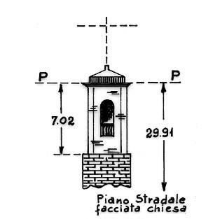 | Materializzazione | Campanile della chiesa parrocchiale dedicata a S. Vincenzo, situata al centro del paese. Asse geometrico del campanile. |