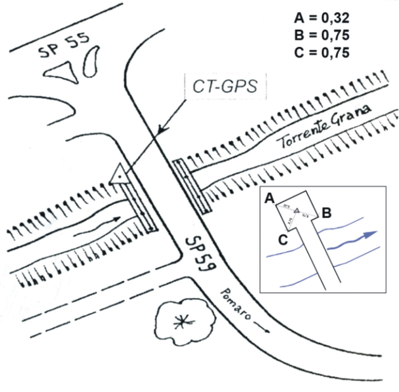 Centrino metallico infisso presso l'estremità nord del cordolo lato monte del ponte sul Torrente Grana.