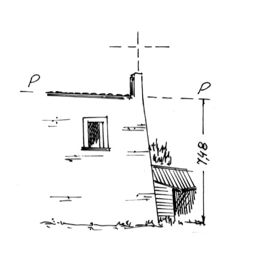 Segnale sullo spigolo nord-ovest della torre. Pilastrino in muratura con centrino metallico incorporato.
