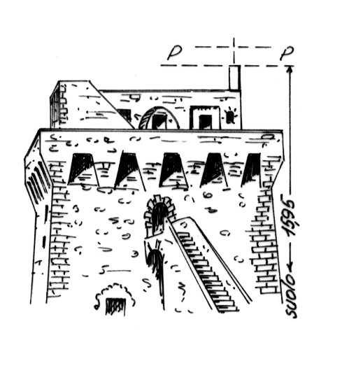 | Materializzazione | Segnale sul parapetto, nello spigolo est della terrazza superiore della torre. Pilastrino con centrino di superficie alla base e centrino di fondo alla sommità. |