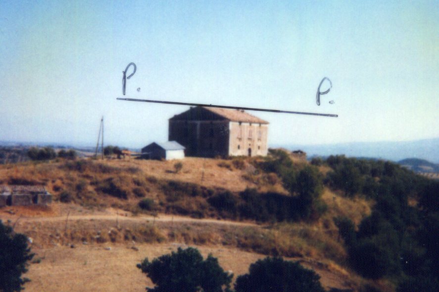 | Materializzazione | Segnale ai piedi della facciata occidentale della casa colonica. Centrino di superficie in corrispondenza del vertice del frontone. |