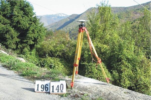 Centrino inox infisso sul muro di sostegno alla strada a valle dell'abitato di Gòrdena.
