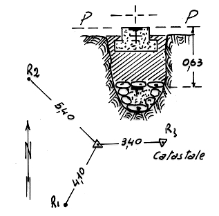 | Materializzazione | Segnale sul margine meridionale della sommità piana della Serra, 250 metri circa a nord della rotabile Acri-Sila, sopra la casa cantoniera S. Vito. Centrino di superficie e di fondo. Riferimenti: come da pianta. |