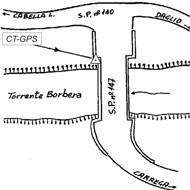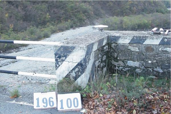 Centrino inox infisso sullo spigolo della spalletta del ponte sul torrente Borbera, al km 0+300 della S.P. 147.