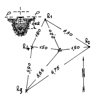 | Materializzazione | Segnale sulla sommità della serra. Centrino di superficie e di fondo. Riferimenti: R1, R2 centrini di riferimento; R3, R4 croci incise su rocce. |