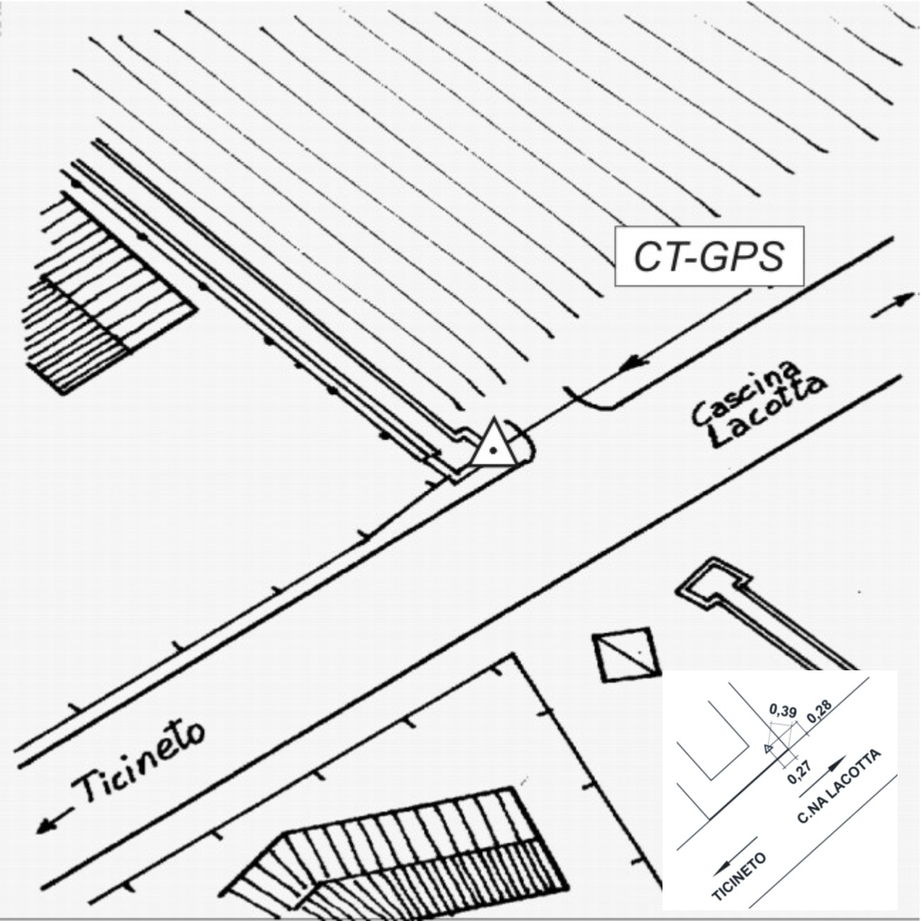 | materializzazione | Centrino metallico infisso sulla della sponda del sifone sul canale a bordo della strada. |
