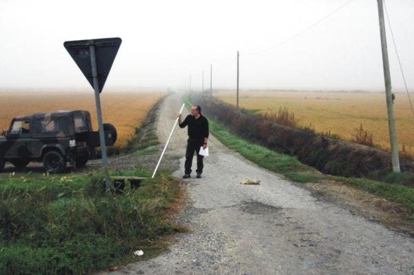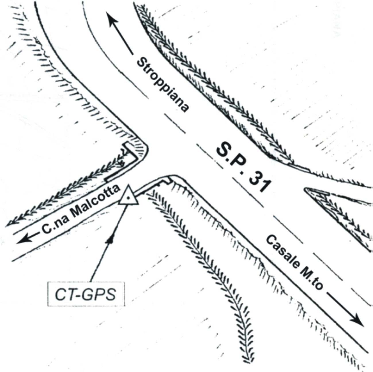 | materializzazione | Centrino metallico infisso sul cordolo lato valle del tombino a lato della strada di accesso alla Cascina Malcotta. |