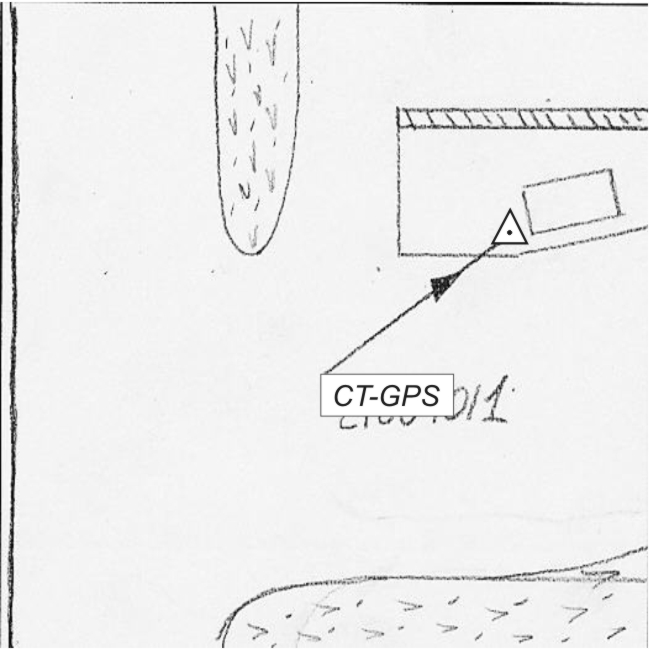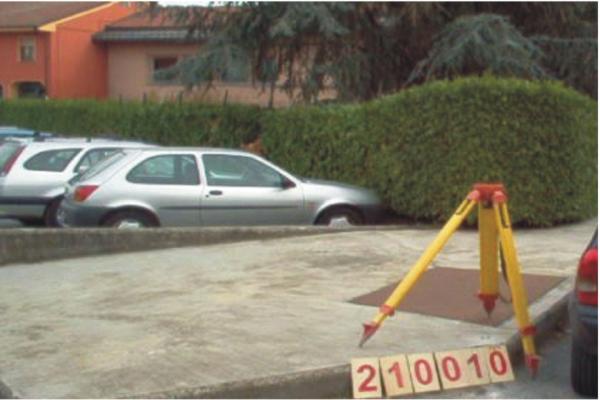 | materializzazione | Centrino metallico infisso sulla sommità del marciapiede in calcestruzzo, in Via Monte Rosa. |