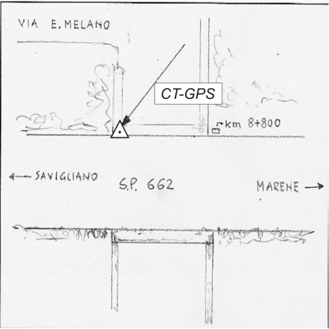 | materializzazione | Centrino metallico infisso sulla sommità di un cavalcavia sito lungo la S.P. 662 al Km 8+800 sulla destra in direzione Savigliano. |