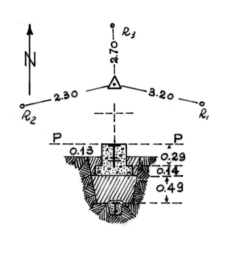 | Materializzazione | Segnale sulle propaggini collinose a nord-ovest di Crotone subito sopra la fattoria Vela. Centrini di superficie e di fondo. Riferimenti: tre come da pianta. |