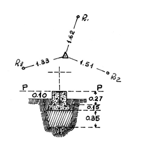 | Materializzazione | Segnale sul punto più alto della collinetta isolata a sinistra della rotabile Crotone-Rocca di Neto. Centrini di superficie e di fondo. Riferimenti: tre come da pianta. |