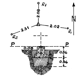 | Materializzazione | Segnale sulla sommità della collinetta omonima. Centrini di superficie e di fondo. Riferimenti: tre come da pianta. |