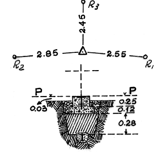 Segnale sopra una piccola altura situata a cinquanta metri metri a nord-est della casa omonima. Centrini di superficie e di fondo. Riferimenti: tre come da pianta.