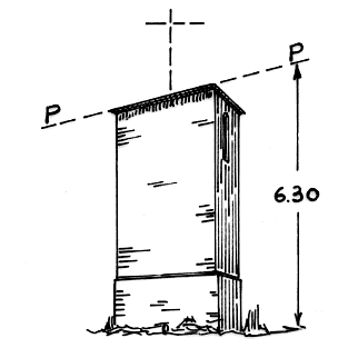 | Materializzazione | Cabina di trasformazione dell'elettrodoto. Asse geometrico della cabina materializzato da centrino metallico di fondo cementato sul tetto. |