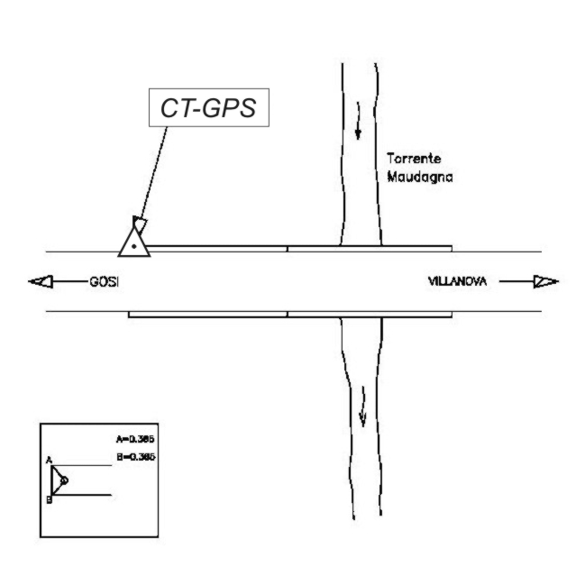 | materializzazione | Centrino metallico infisso sulla sommità del muretto di sostegno del ponticello che sovrasta il Torrente Maudanga in Via Forea, in località Gosi. |