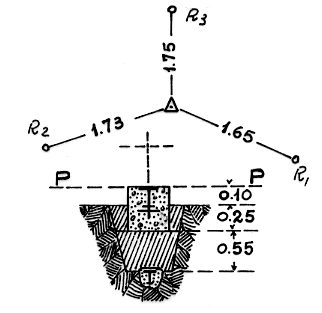 | Materializzazione | Segnale sul punto più elevato de gruppo collinoso "Manca del Vescovo" a nord della stazione di Apriglianello. Centrini di superficie e di fondo. Riferimenti: tre come da pianta. |
