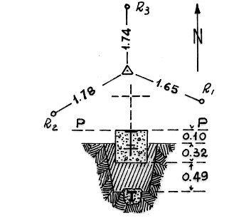 | Materializzazione | Segnale sul dorso di una collina, circa ottocento metri a sud-ovest del bivio delle strade per Catanzaro e per S. Mauro Marchesato. Centrini di superficie e di fondo. Riferimenti: tre come da pianta. |