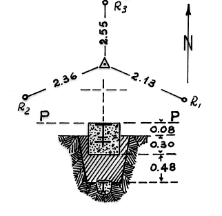 | Materializzazione | Segnale su piccola groppa del costone tondeggiante della Serra del Salice, in localitàdenominata Caracalli. Centrini di superficie e di fondo. Riferimenti: come da pianta. |