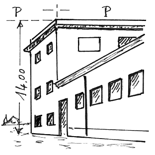 Segnale sullo spigolo Nord-Est del parapetto alla sommità dell'edificio. Tondinello cementato nel centro della copertina in corrispondenza dello spigolo suddetto.