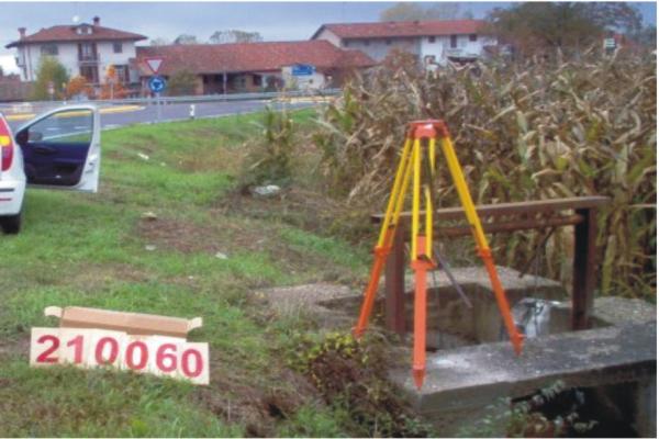 | materializzazione | Centrino metallico infisso sulla sommità del muretto del chiusino sulla sinistra in direzione Carrù. |