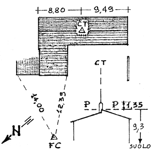 | Materializzazione | Asse geometrico del pilastrino che sostiene il parafulmine sul colmo del tetto di casa Malerba. |