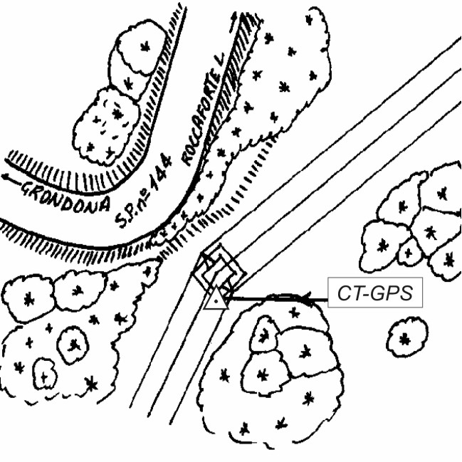 | materializzazione | Centrino inox infisso in prossimità dello spigolo sud del basamento del traliccio situato a valle del tornante al km 10+300 circa della S.P. 144 che da Grondona conduce a Roccaforte Ligure. |