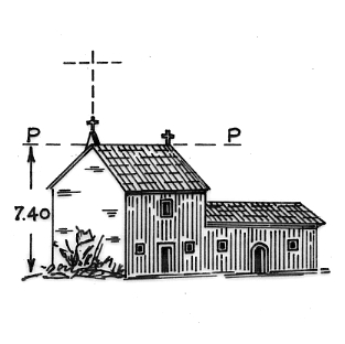 Segnale sull'estremità sinistra del colmo tetto della cascina. Pilastrino.