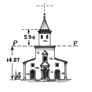 | Materializzazione | Campanile sul frontone della chiesa. Asse geometrico del campanile. |