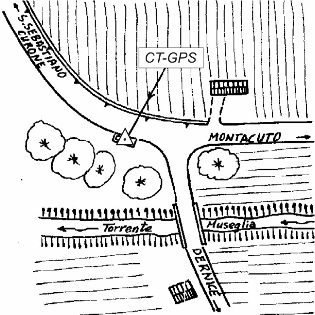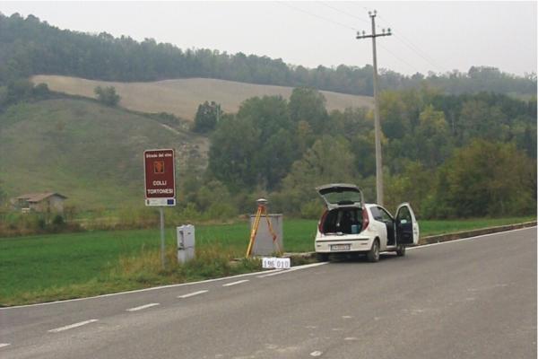 Centrino inox infisso sul basamento in calcestruzzo di un box per contatori telefonici situato a margine della S.P. 110 da San Sebastiano Curone in direzione Dernice, nei pressi del bivio con la SP. 114.