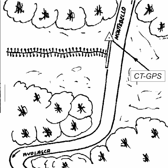 | materializzazione | Centrino inox infisso presso l'estremità nord del muro di contenimento al Km 13+200 della S.P. 125, a nord di Avolasca. |