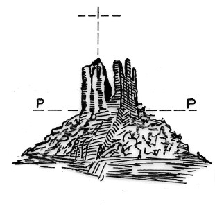 Spigolo sud-ovest degli avanzi di un vecchio castello.