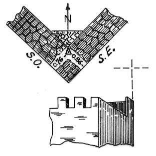 Segnale sopra lo spigolo sud della torre quadrata del castello adibito a carcere. Centrino con sovrastante pilastrino alto m 1,25.