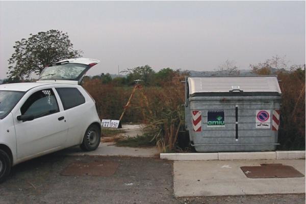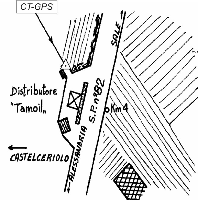 Centrino inox infisso sulla platea in calcestruzzo a margine dell'area di servizio Tamoil, all'altezza del km 4 della S.S. 82, nelle vicinanze del casello autostradale di Alessandria Est.