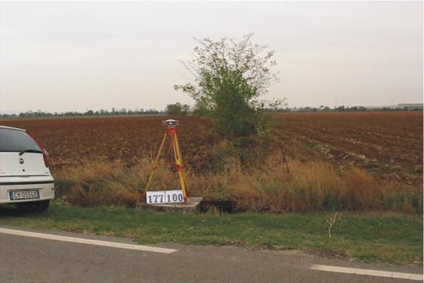 | materializzazione | Centrino inox infisso al centro del manufatto in calcestruzzo del sistema di chiuse irrigue situato al km 4+150 della S.P. 148. |
