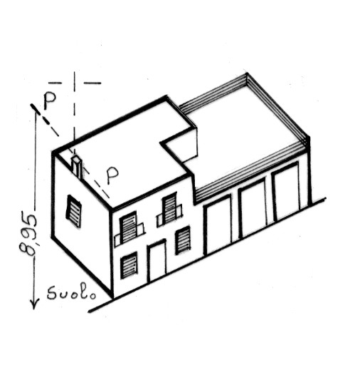 Serbatoio posto sulla copertura superiore, presso lo spigolo nord-ovest della casa. Asse geomerico del serbatoio.