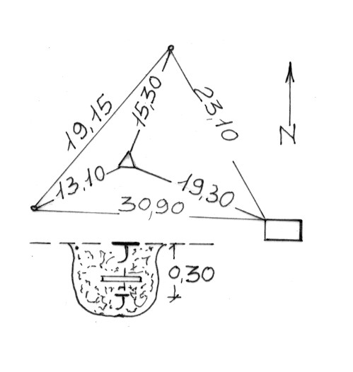 | Materializzazione | Centrini di fondo e di superficie cementati nel tufo. Riferimenti: R1, R2, centrini metallici cementati nel tufo; R3 spigolo cabina elettrica. |