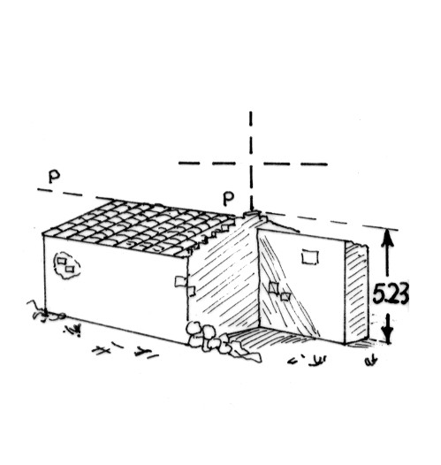 | Materializzazione | Centrino metallico cementato sul pilastrino posto sul colmo tetto frontone ovest della casa. |