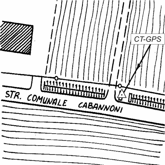 | materializzazione | Centrino inox infisso sul tombino a lato della Strada Cerchia Cabannoni, al bivio con la strada privata che conduce al numero civico 17. |