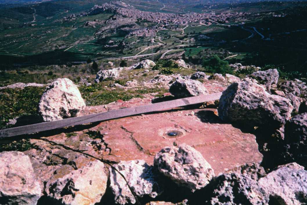 | accesso | Da Caltanissetta prendere la S.S.191 in direzione Pietraperzia, al Km 18,900 girare a dx prima di un tabernacolo sulla dx; salire per circa km 2 su detta strada (asfaltata nel primo tratto) fino alla cima del monte dove, nelle vicinanze di due antenne di un ponte radio dell'Esercito, è posto il punto. Con automezzo fuoristrada fino al punto. |