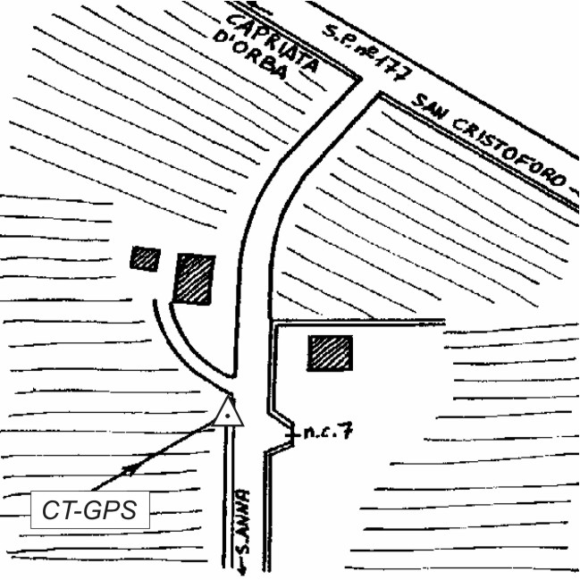 | materializzazione | Centrino inox infisso sul cordolo in cemento di fronte alla casa n.c. 7 sulla strada che dalla S.P. 177 conduce a Passaronda – Cassuli. |