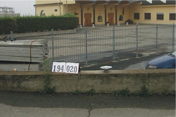 | materializzazione | Centrino inox infisso a 2,70 metri dall'estremità del muro fra Piazza Europa e la strada che conduce al cimitero di Maranzana. |