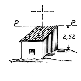 | Materializzazione | Casetta con tetto ad un solo spiovente. Spigolo della casetta , parte più alta dello spiovente,come risulta dal prospettino. |