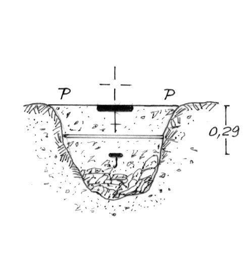 Segnale sulla parte più elevata a est del Serrone Cipollazzo. Centrini metallici di fondo e di superficie cementati coassialmente in blocco di calcestruzzo.