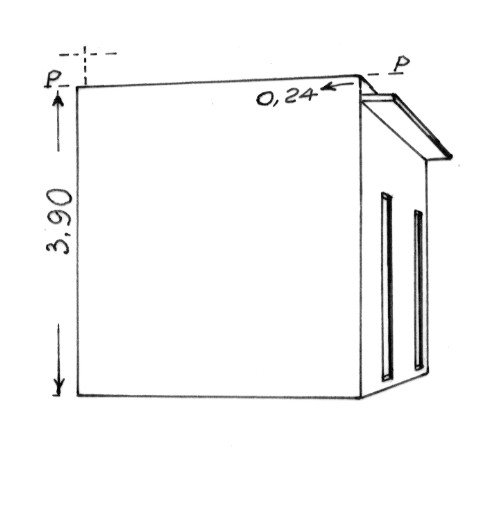 Segnale sul magazzino di campagna sito in prossimità del bivio per Villaggio Stoccatello della strada per Montevago. Spigolo interno N. E. del cordolo del terrazzo a copertura del manufatto.