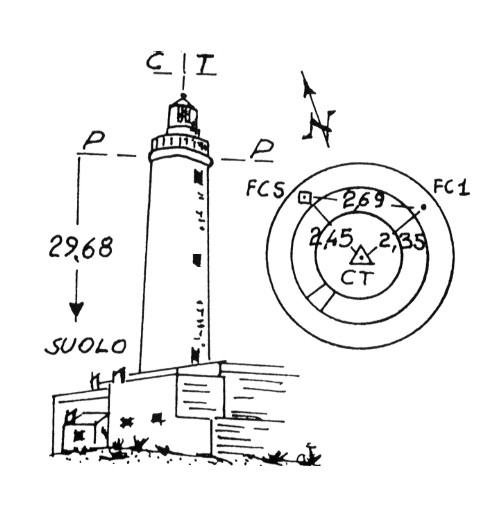 | Materializzazione | Faro situato nei pressi di Capo Granitola. Asse geometrico del Faro. |